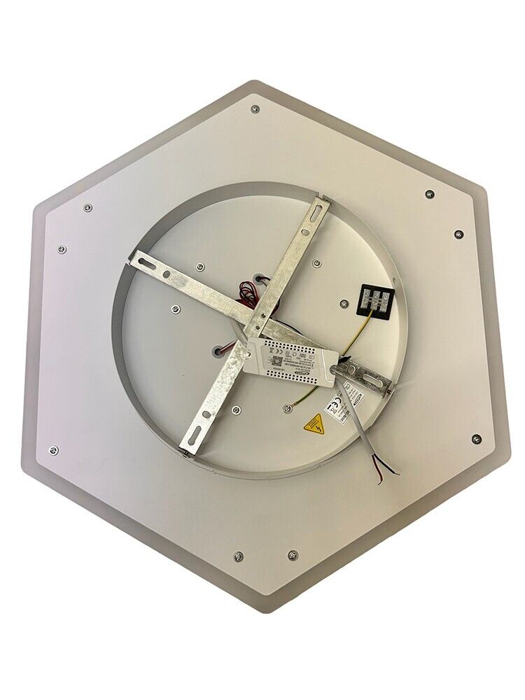 • Potenza: 37 watt - Flusso luminoso: 2960 Lm - Fascio luminoso: 180° Tensione di ingresso: AC 220-240V 50/60 Hz - Indice di resa: > 80 Dimensioni: 57.5x50x4 cm - Materiale: Acrilico (effetto vetro) + metallo (la parte posteriore del rosone) Peso: 3.5 Kg