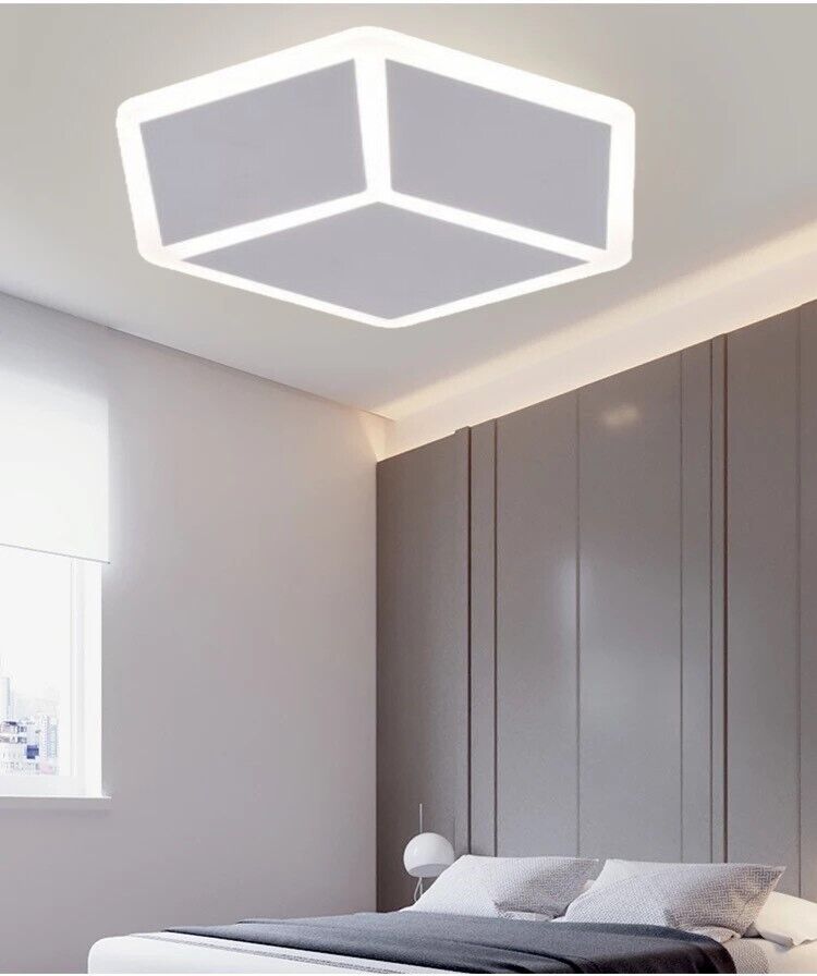 • Elegante plafoniera decorativa che ricrea in la forma di un cubo tridimensionale con LED integrato. Ma attenzione, la struttura è totalmente PIATTA e di colore BIANCO