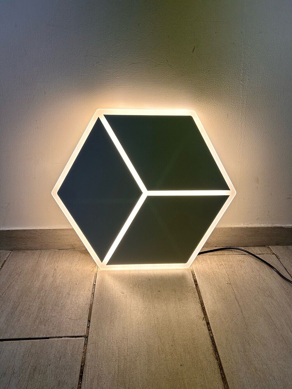 • Elegante plafoniera decorativa che ricrea in la forma di un cubo tridimensionale con LED integrato. Ma attenzione, la struttura è totalmente PIATTA e di colore BIANCO