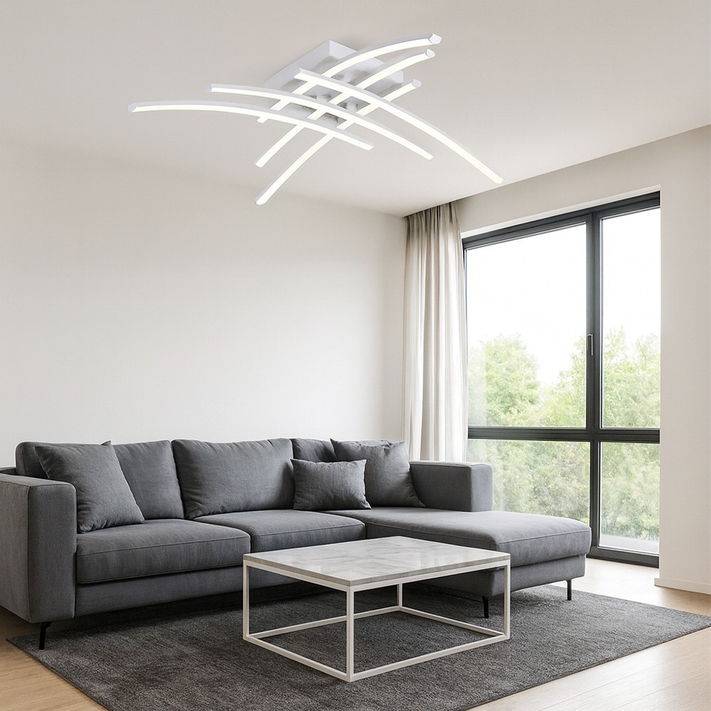 Questa plafoniera LED da soffitto da 36W si distingue per il suo design moderno e scultoreo, caratterizzato da sei fasce LED curve incrociate che creano un effetto visivo elegante e contemporaneo. La finitura bianca la rende perfetta per ambienti moderni, minimal e raffinati. Con una potenza di 36 watt e un flusso luminoso di 3040 lumen, garantisce un’illuminazione intensa, uniforme e diffusa a 180°, ideale per ambienti di medie e grandi dimensioni. La tecnologia CCT integrata consente di selezionare la temperatura colore tra luce calda 3000K, naturale 4000K o fredda 6500K tramite pratico switch sul driver. È la soluzione ideale per soggiorno, salotto, sala da pranzo, ingresso, open space, studio o ambienti professionali come uffici e sale riunioni, offrendo sempre la giusta atmosfera in base al momento della giornata.