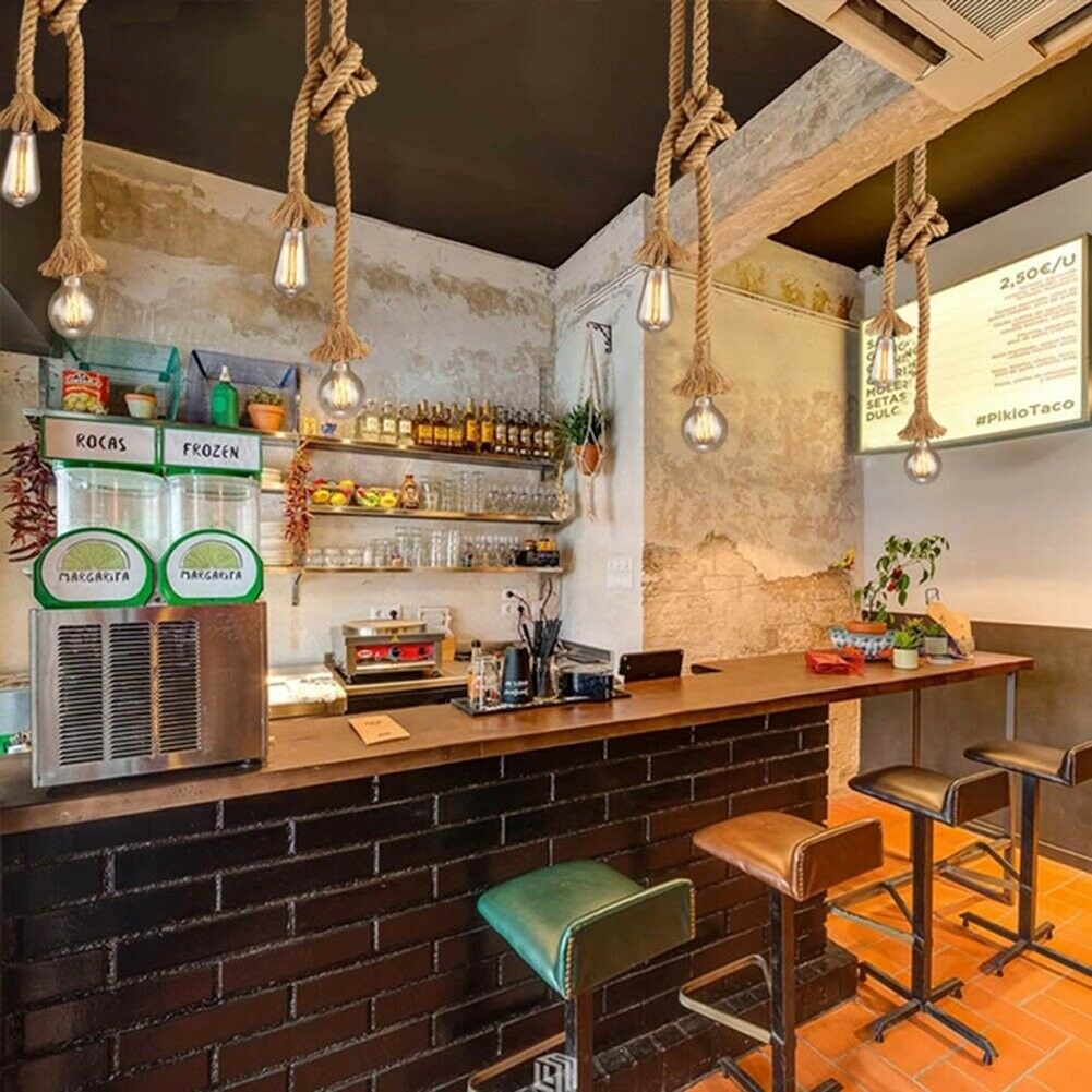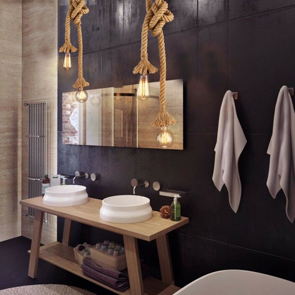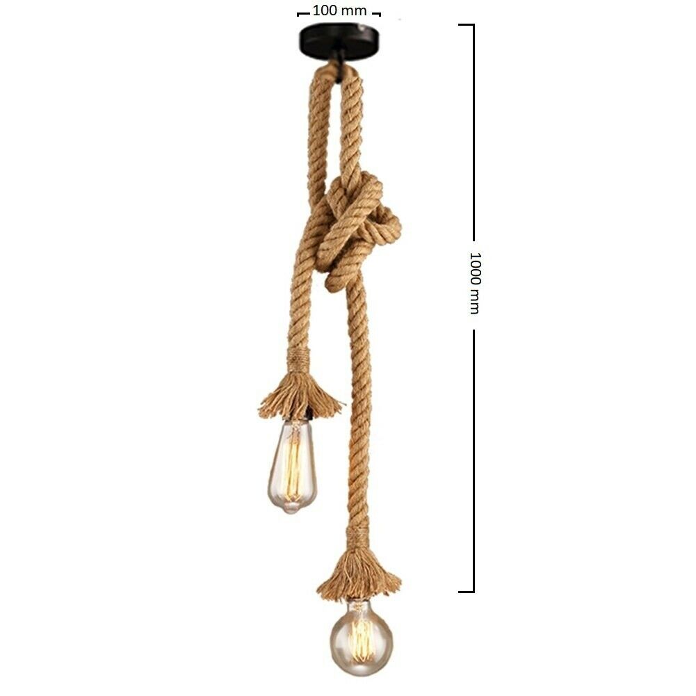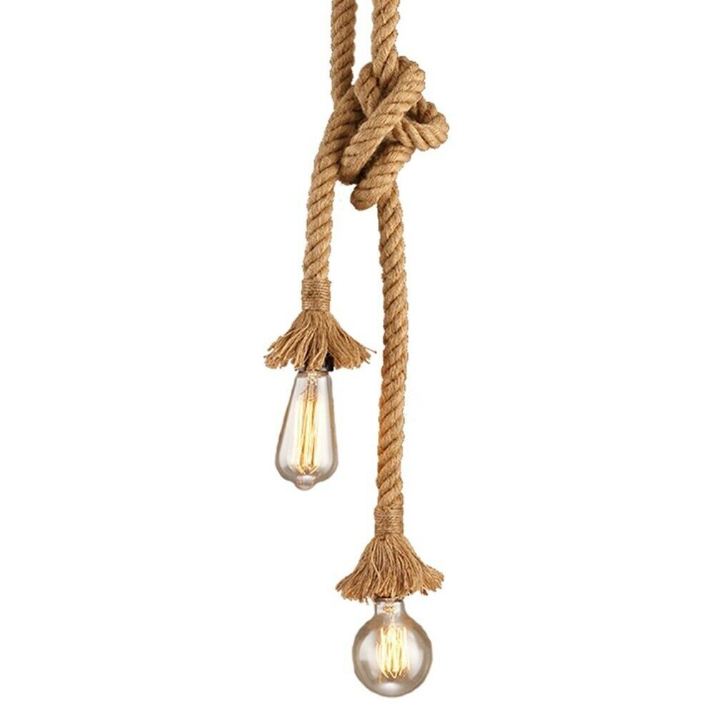 Porta lampadina E27x2 pendente corda canapa design vintage antico rustico