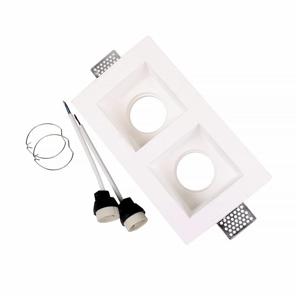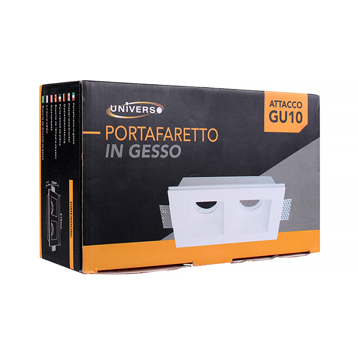 Nel mondo dell'illuminazione interna, dove estetica e funzionalità si incontrano, emerge il portafaretto rettangolare da incasso, una soluzione di design che unisce eleganza, innovazione e versatilità. Realizzato con materiali di alta qualità, tra cui gesso ceramico di prima scelta e componenti in alluminio, questo portafaretto si distingue per il suo aspetto raffinato e la sua capacità di integrarsi armoniosamente in qualsiasi ambiente interno, grazie alla sua verniciabilità che consente di adattarlo a ogni stile decorativo. Con dimensioni precise di 215x120x58 mm e un foro di incasso di 220x125 mm, il portafaretto rettangolare si installa facilmente in controsoffitti, offrendo un'illuminazione focalizzata e di grande impatto visivo. La struttura rettangolare, insieme al colore bianco puro del gesso ceramico, conferisce un tocco di modernità e pulizia visiva, rendendolo l'opzione ideale per chi desidera combinare stile e funzionalità in spazi quali soggiorni, corridoi, uffici o ambienti commerciali. Dotato di doppio attacco GU10, questo portafaretto permette l'utilizzo di una vasta gamma di lampadine LED, compatibili con tensioni di alimentazione da 110 a 240V AC e frequenze di 50/60 Hz, assicurando così una flessibilità senza pari nella scelta dell'illuminazione più adatta alle proprie esigenze. Nonostante la possibilità di ospitare due sorgenti luminose, le lampadine non sono incluse, offrendo agli utenti la libertà di personalizzare l'intensità e il tipo di luce in base alle proprie preferenze. Oltre alle sue caratteristiche estetiche e funzionali, il portafaretto rettangolare da incasso è progettato per essere facilmente verniciabile, permettendo così una personalizzazione ulteriore che può riflettere o completare il tema cromatico dell'ambiente circostante. Questa peculiarità lo rende particolarmente adatto a progetti di rinnovamento o a nuove costruzioni che mirano a creare spazi luminosi, accoglienti e in linea con le ultime tendenze del design interno. Pensato per chi non vuole scendere a compromessi tra estetica e prestazioni, questo portafaretto combina un peso di 1.220Kg, che ne testimonia la robustezza e la qualità costruttiva, con la facilità di installazione e manutenzione. Il design rettangolare e la finitura in gesso bianco ne fanno una soluzione di illuminazione che si adatta con discrezione ed eleganza a qualsiasi stile di arredamento, dal classico al contemporaneo, rendendo ogni ambiente più accogliente e stilisticamente coerente