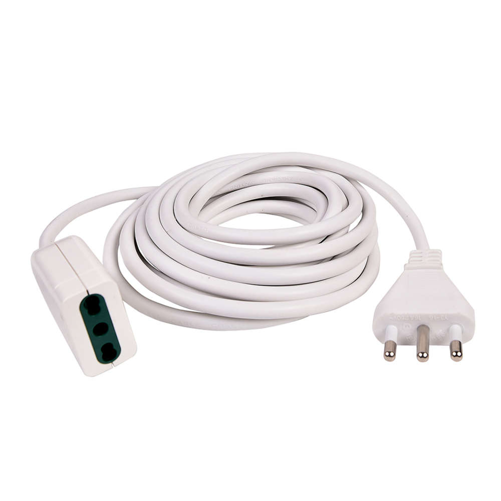 PROLUNGA ELETTRICA BIPASSO 10/16A CON SPINA E PRESA 2P/T DA 5 METRI - IDEALE PER USO DOMESTICO E UFFICIO