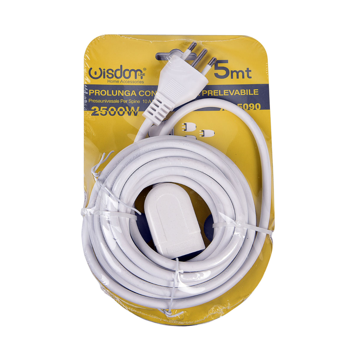 PROLUNGA ELETTRICA BIPASSO 10A 2P+T CON SPINA 10A - CAVO BIANCO DA 5 METRI USO INTERNO SICUREZZA E AFFIDABILITA'