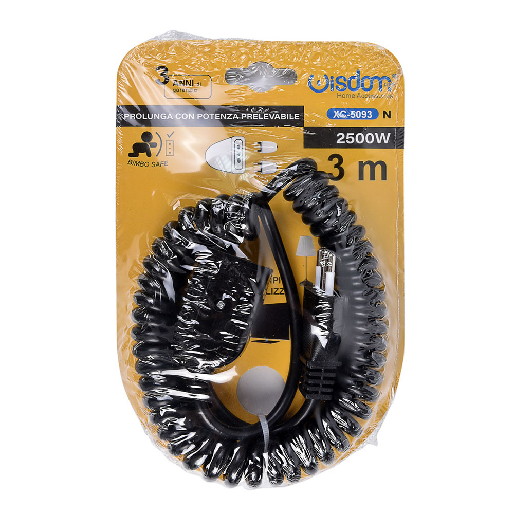 PROLUNGA ELETTRICA ESTENDIBILE 3 METRI CON SPINA BIPASSO 10A 2P/T - MASSIMA SICUREZZA E FLESSIBILITA' PER CASA E UFFICIO