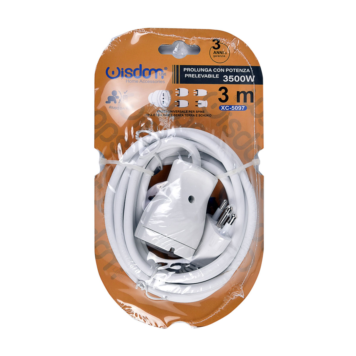 PROLUNGA BIPASSO SCHUKO 10/16A CON SPINA 16A 2P/T DA 3 METRI - ESTENSIONE ELETTRICA DI QUALITA' PER USO INTERNO