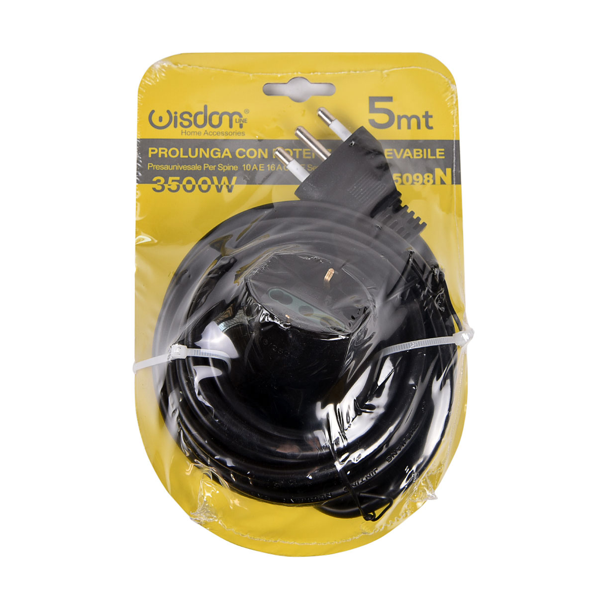PROLUNGA ELETTRICA SCHUKO BIPASSO 10/16A 2P+T CON SPINA S17 16A DA 5 METRI - PRESA UNIVERSALE PER USO INTERNO IDEALE PER ELETTRODOMESTICI UFFICI E LABORATORI