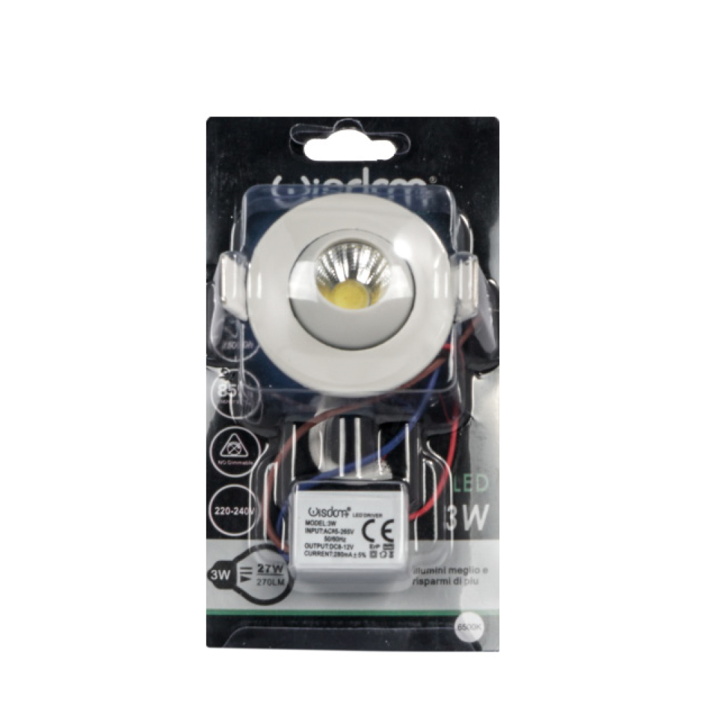 Punto luce led 3w tondo luce calda 3000k