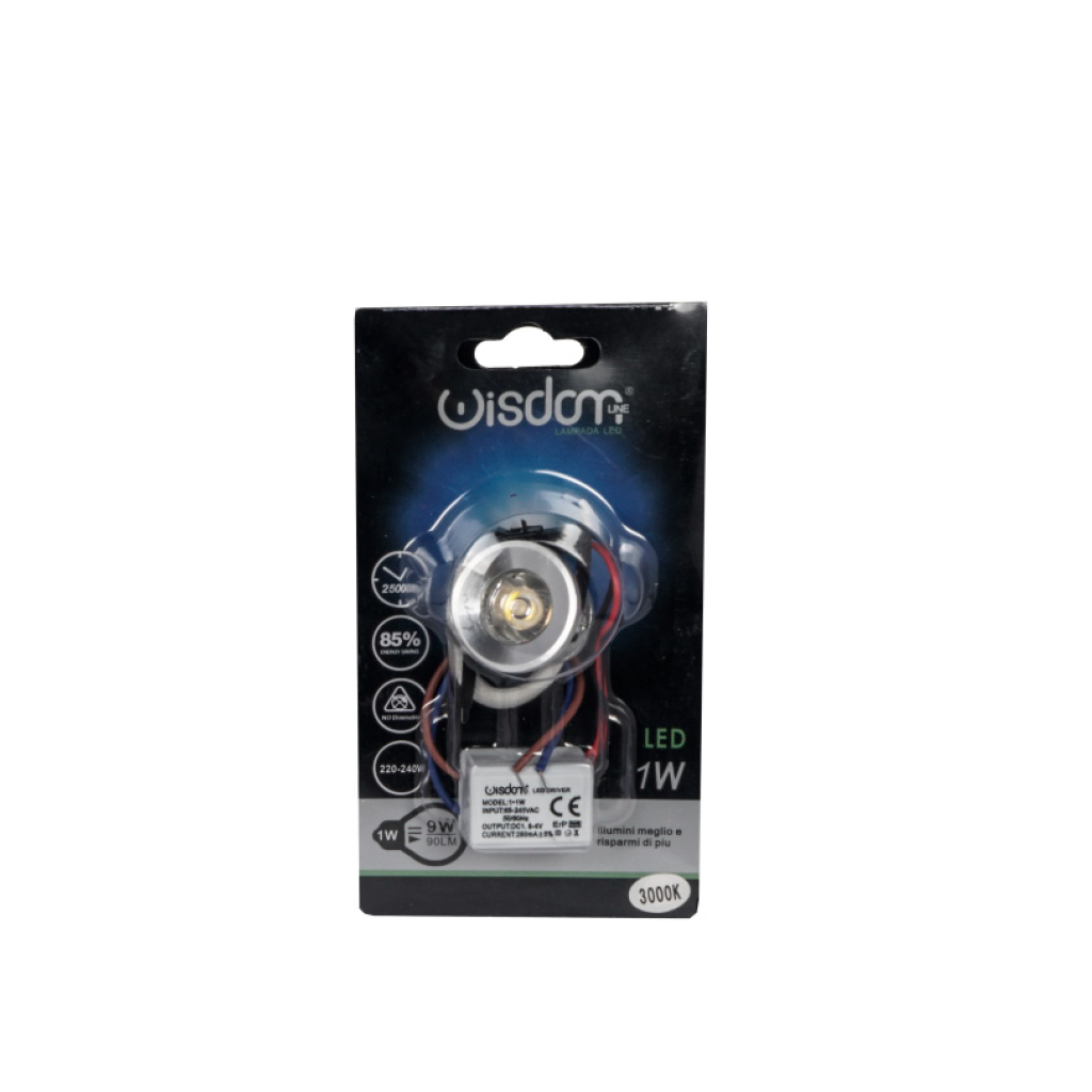 Mini faretto ad incasso da 1w interamente realizzato in alluminio con tensione di alimentazione 220V per un immediato collegamento alla corrente domestica.