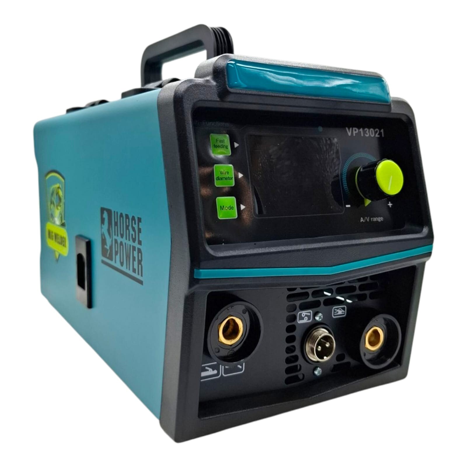 Saldatrice multifunzione inverter ad alte prestazioni, progettata per operazioni di saldatura in modalità MIG (senza gas, con filo animato) e MMA (a elettrodo rivestito).