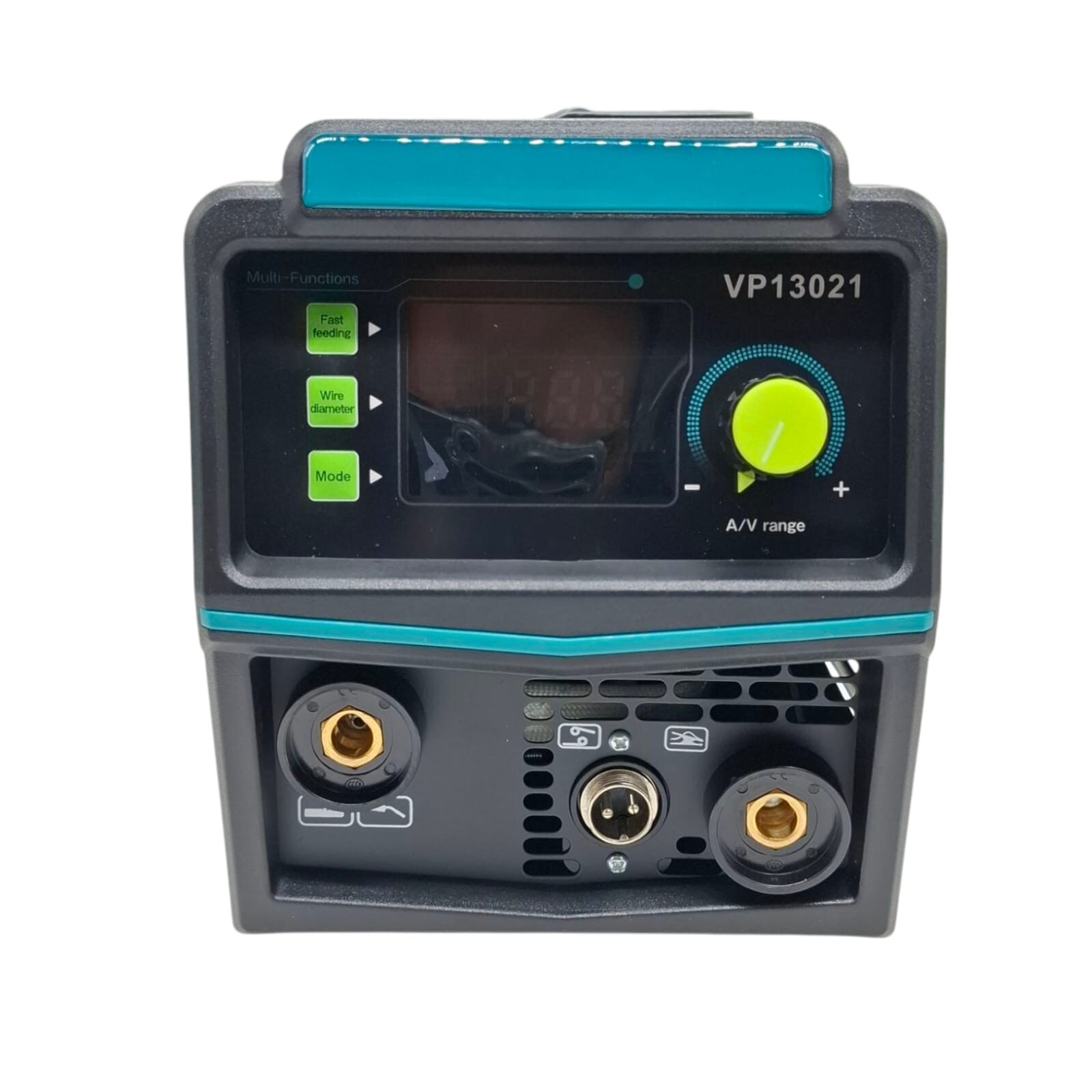 Saldatrice multifunzione inverter ad alte prestazioni, progettata per operazioni di saldatura in modalità MIG (senza gas, con filo animato) e MMA (a elettrodo rivestito).