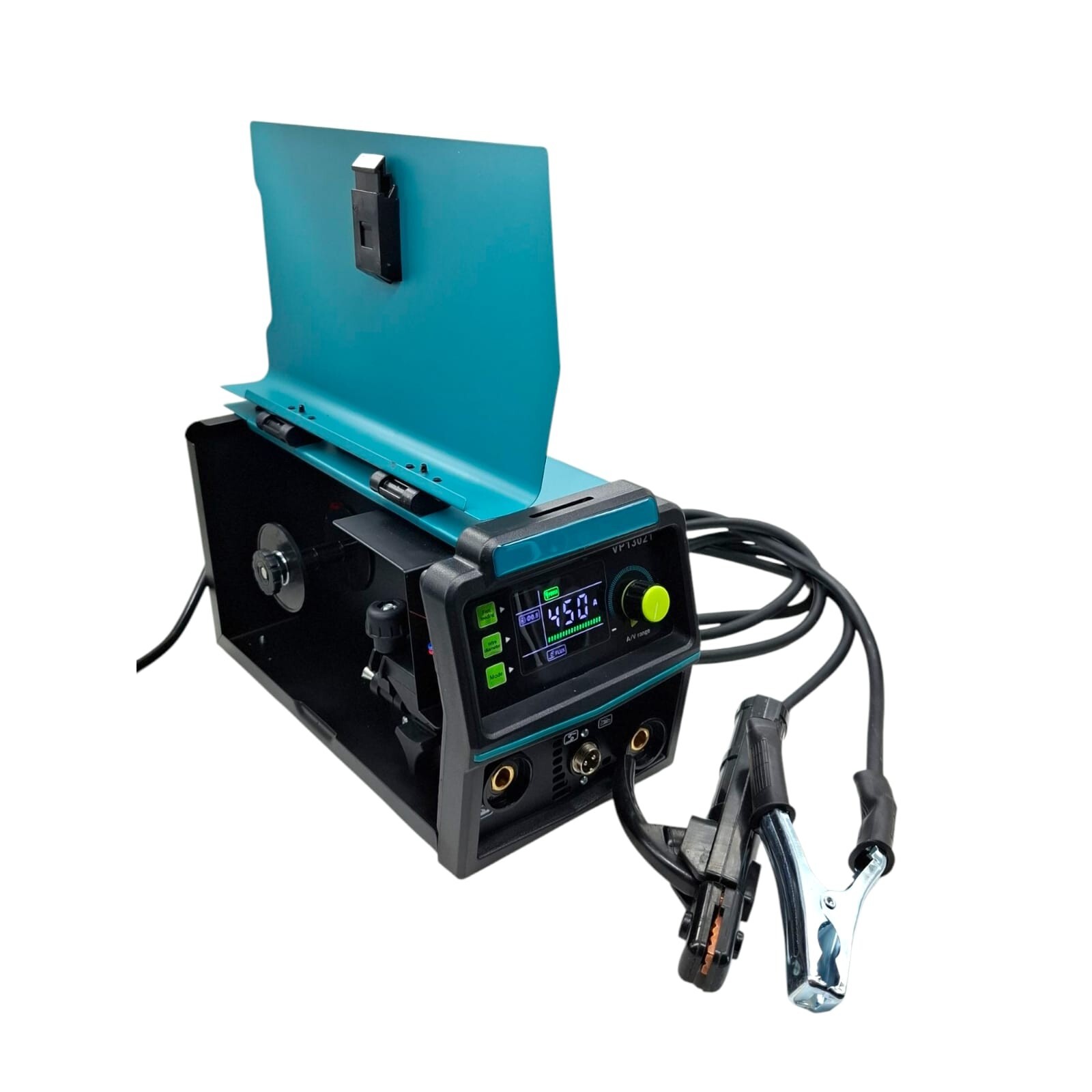Saldatrice multifunzione inverter ad alte prestazioni, progettata per operazioni di saldatura in modalità MIG (senza gas, con filo animato) e MMA (a elettrodo rivestito).