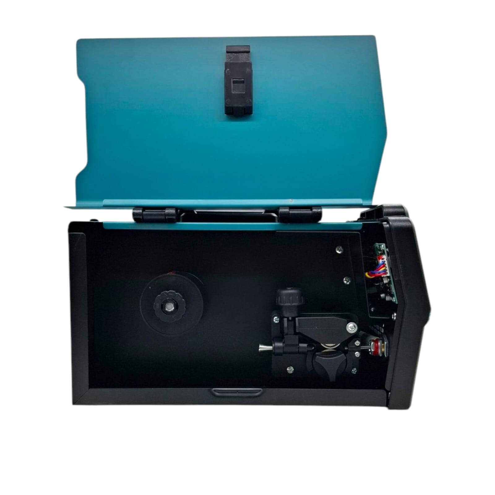 Saldatrice multifunzione inverter ad alte prestazioni, progettata per operazioni di saldatura in modalità MIG (senza gas, con filo animato) e MMA (a elettrodo rivestito).