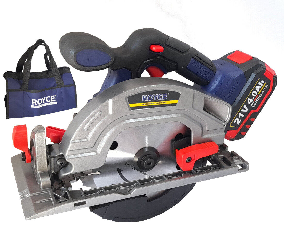 Sega circolare a batteria 21V 165mm taglio 4Ah 5000RPM regolabile Royce e borsa