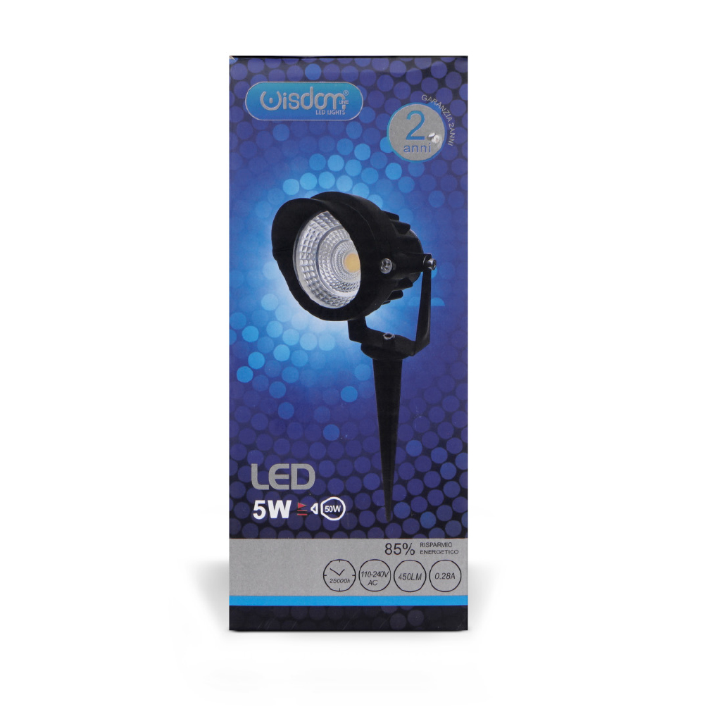 Con picchetto incluso ed alimentatore incorporato l'installazione del faro risulta particolarmente semplice: è sufficiente conficcare il picchetto nel terreno e collegare direttamente l'alimentazione alla tensione domestica a 220V