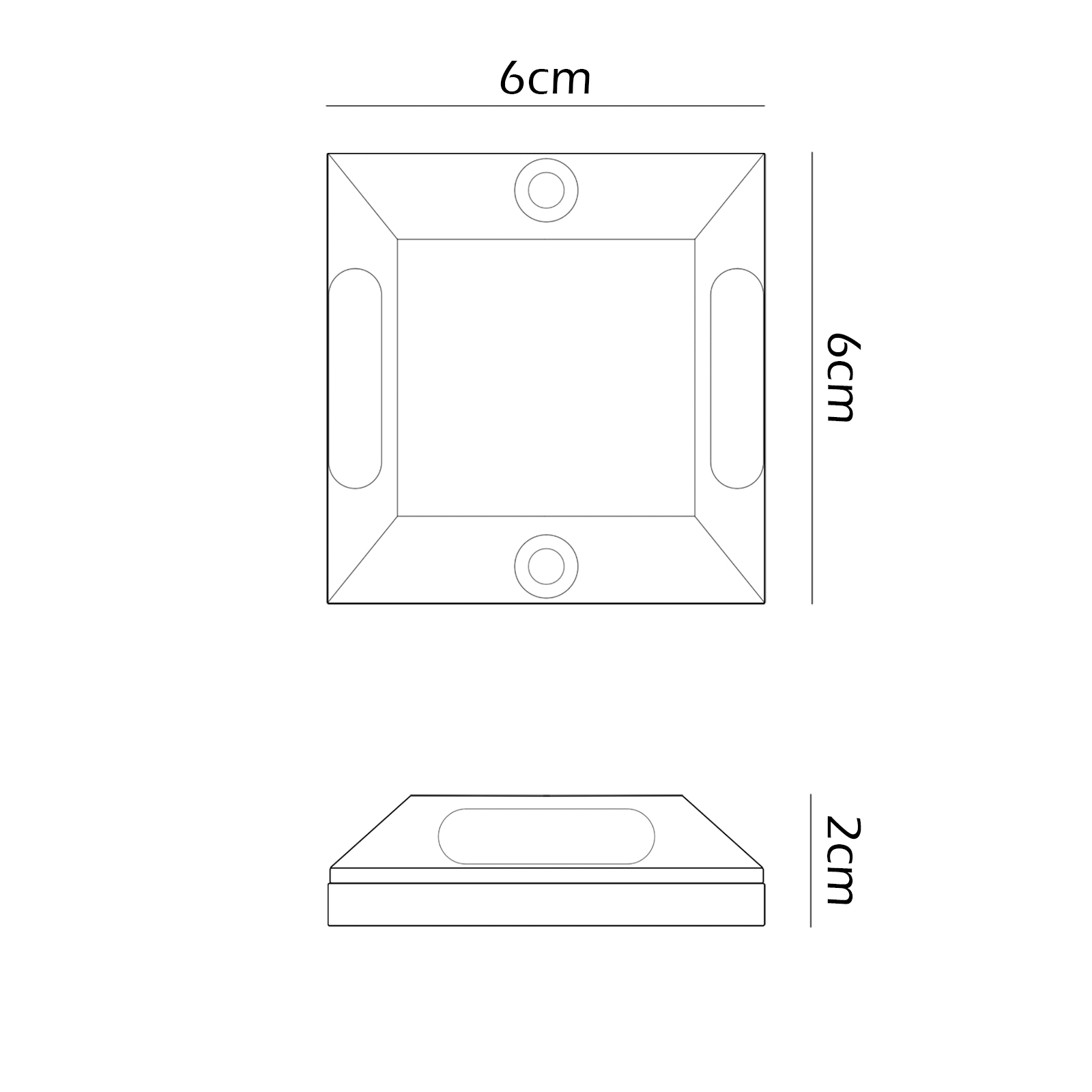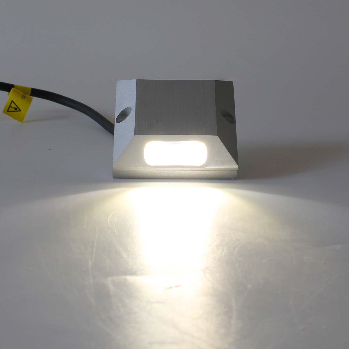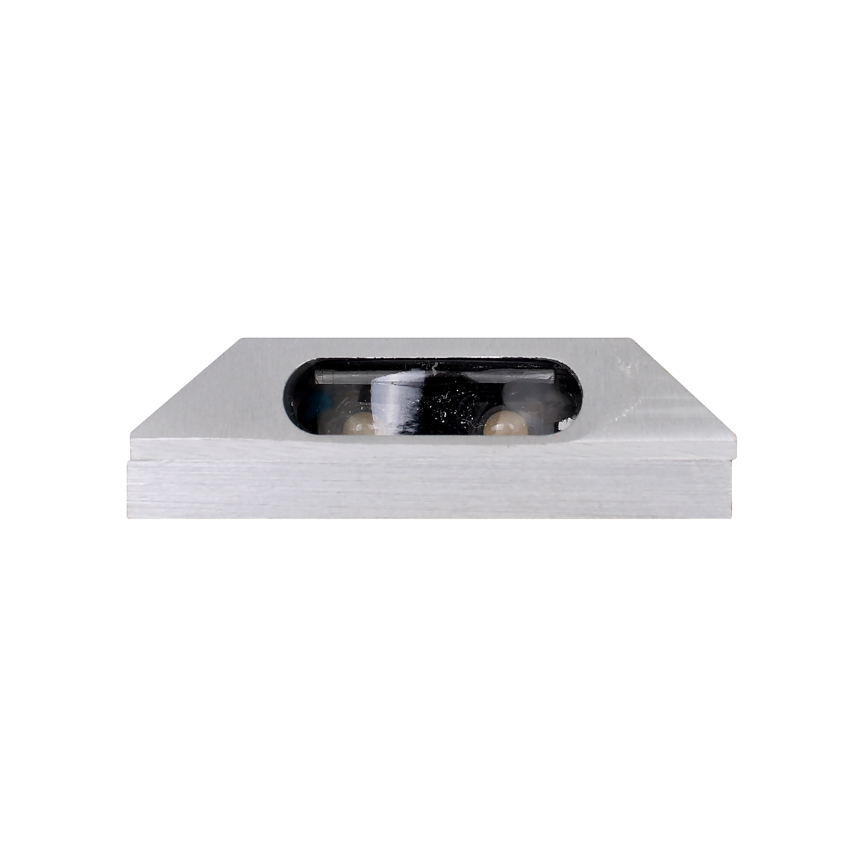 Il corpo del segnapasso è realizzato in alluminio spazzolato di alta qualità con finitura argento, che dona un aspetto contemporaneo ed elegante, perfetto per contesti residenziali e commerciali. La forma quadrata con dimensioni compatte (6 x 6 x 2 cm) ne consente l'integrazione discreta in qualsiasi superficie piana. Il design squadrato è pensato per armonizzarsi con ambienti minimalisti o architetture moderne.