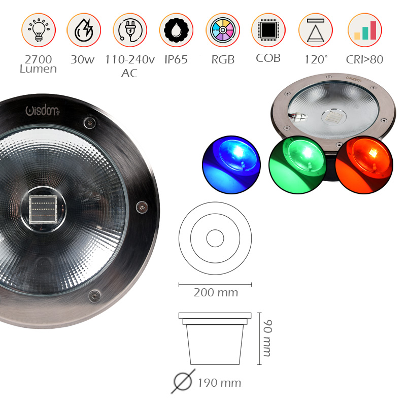 Illumina i tuoi spazi esterni con il segnapasso LED COB 30W RGB, una soluzione moderna e resistente pensata per garantire efficienza e durata. Grazie alla robusta struttura in acciaio inox e vetro temperato, questo faretto calpestabile offre protezione IP65, rendendolo ideale per l'installazione in viali, giardini, vialetti e ingressi.