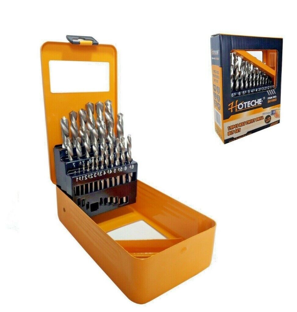 Set di 19 punte per trapano HSS elicoidali da ferro misure da 1 a 10 mm Hoteche