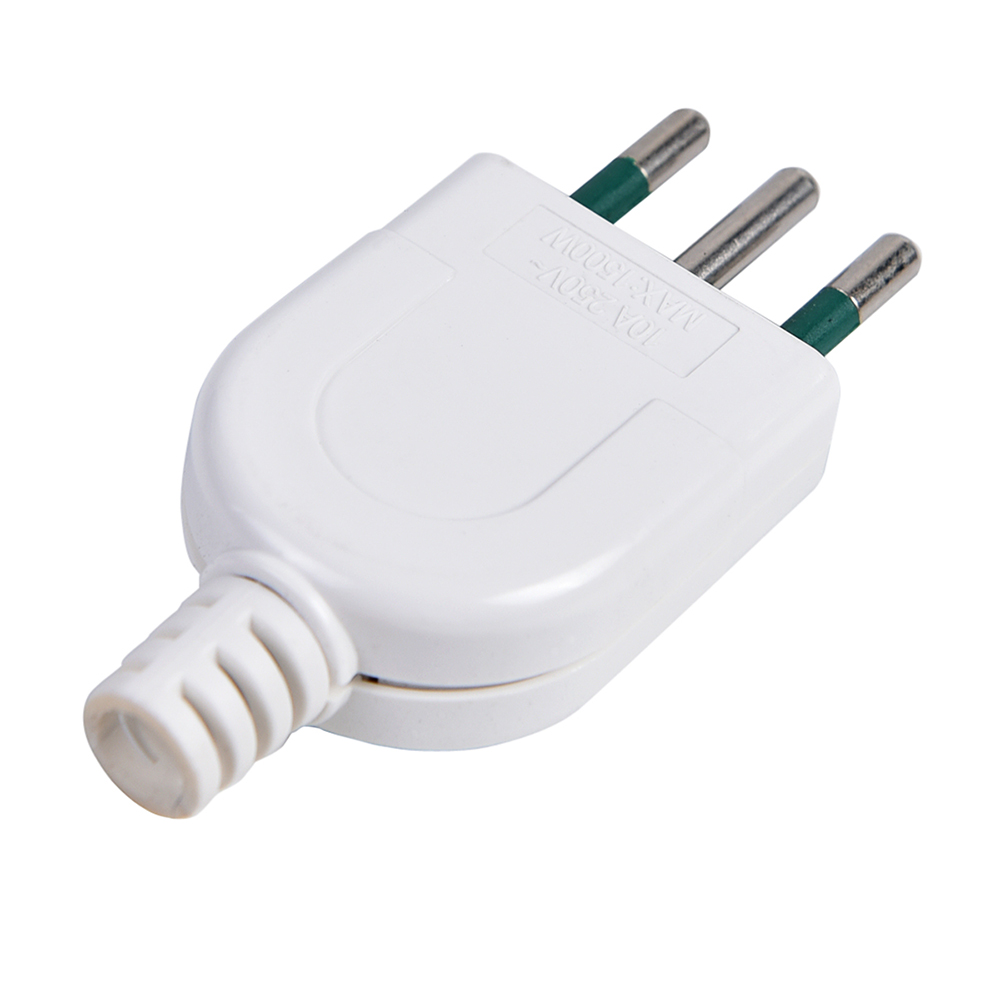 SPINA ELETTRICA BIANCA S11 10A 2 POLI + TERRA ASSIALE - IDEALE PER IMPIANTI DOMESTICI CIVILI ED ELETTRONICI