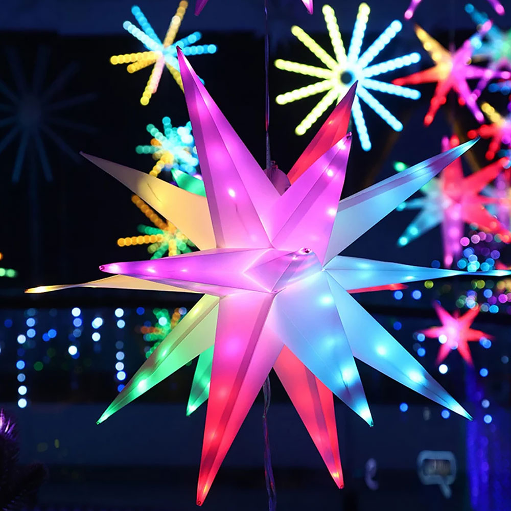 • Illuminazione RGB personalizzabile: Questa stella luminosa 3D da 60 cm è dotata di LED RGB che offrono infiniti giochi di luce personalizzabili tramite telecomando e app Bluetooth. Cambia colori, scene e velocità con facilità.