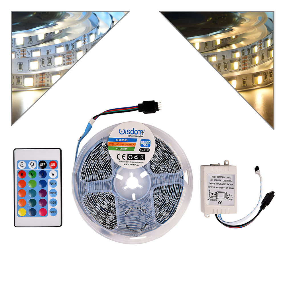 Infografica Striscia LED da 12V da 5 Metri con Luce Naturale o Fredda IP20 per Uso Interno