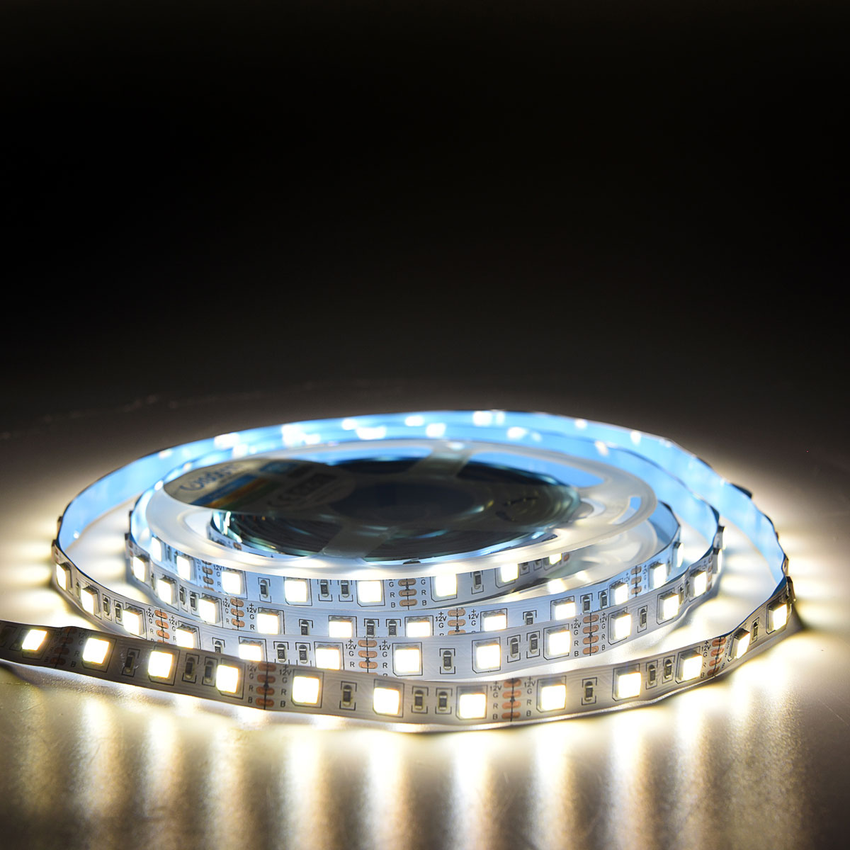 STRISCIA 120 LED/M LUCE NATURALE E FREDDA 12V DA 5 METRI - IP2O PER USO INTERNO FLESSIBILE E TAGLIABILE AD ALTA LUMINOSITA'