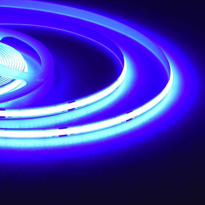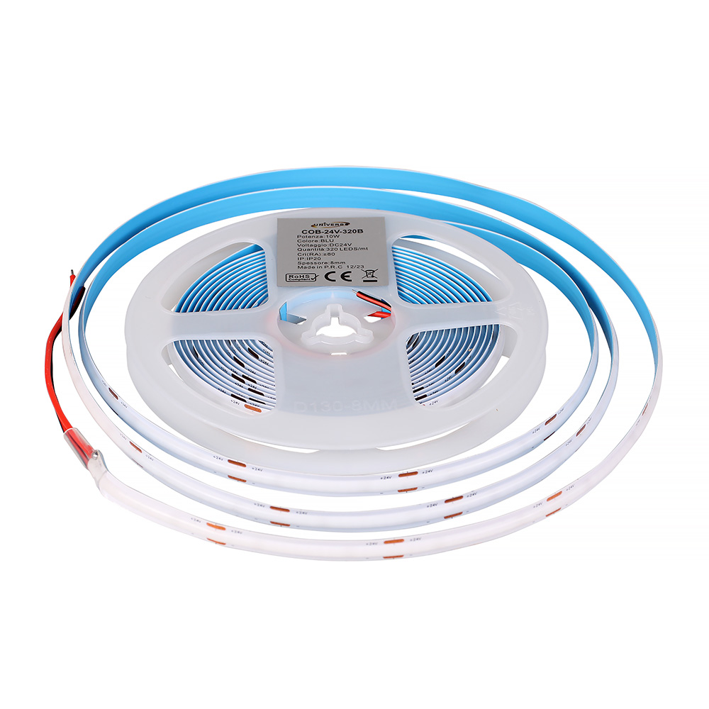 STRISCIA LED COB 5M TAGLIABILE LUCE BLU A 24V - ELEVATA LUMINOSITA' 1020 LM/m CON ANGOLO DI ILLUMINAZIONE A 180°