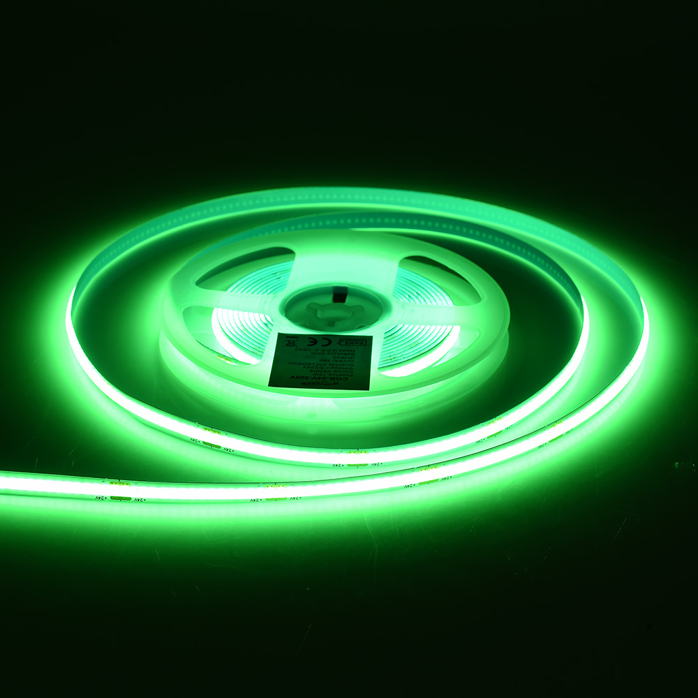 La striscia LED COB verde da 5 metri a 24V rappresenta una soluzione di illuminazione innovativa e versatile, ideale per chi desidera creare ambienti suggestivi e personalizzati. Questa striscia LED si distingue per la sua luminosità eccezionale, la flessibilità e la facilità d'installazione, rendendola perfetta per una vasta gamma di applicazioni, sia decorative che funzionali. Con una potenza di 10 watt per metro, la striscia LED COB offre una luce intensa e uniforme, capace di valorizzare qualsiasi spazio. Il colore verde della luce è particolarmente indicato per creare atmosfere accoglienti e rilassanti, ideali per feste, eventi, o semplicemente per aggiungere un tocco di originalità alla tua casa. Grazie alla tecnologia COB (Chip on Board), la luce è distribuita in modo omogeneo lungo tutta la striscia, senza punti di luce visibili, garantendo un effetto estetico elegante e professionale. La striscia LED COB misura 5 metri in lunghezza e ha uno spessore di soli 8mm, il che la rende estremamente flessibile e facile da installare anche in spazi ristretti. È dotata di 320 LED per metro, offrendo una luminosità di 1020 lumen per metro. Con un indice di resa cromatica (CRI) superiore a 80, questa striscia LED assicura colori vividi e naturali, fondamentali per creare ambienti visivamente piacevoli. L'angolo di illuminazione di 180° permette di coprire un'ampia area, rendendo questa striscia LED adatta a molteplici utilizzi, come l'illuminazione di interni, decorazioni per feste ed eventi, illuminazione di scaffali, vetrine e mobili. La striscia può essere tagliata ogni 5 cm, permettendoti di personalizzare la lunghezza in base alle tue esigenze specifiche. Un altro vantaggio di questa striscia LED COB verde è la sua lunga durata, con una vita media di 30.000 ore. Questo significa che non dovrai preoccuparti di sostituzioni frequenti, risparmiando tempo e denaro nel lungo periodo. Il grado di protezione IP20 la rende adatta per uso interno, proteggendola da polvere e piccoli corpi solidi. L'alimentazione a 24V DC assicura un funzionamento sicuro e stabile, compatibile con la maggior parte degli alimentatori per strisce LED disponibili sul mercato. Tuttavia, è importante notare che l'alimentatore non è incluso, quindi dovrai procurartene uno separatamente. L'installazione della striscia LED COB verde è semplice e veloce. Il retro della striscia è adesivo, permettendo di fissarla saldamente a superfici lisce e pulite. Questo ti consente di posizionarla facilmente su pareti, soffitti, mobili e molto altro. La possibilità di tagliare la striscia ogni 5 cm ti permette di adattarla perfettamente a qualsiasi spazio, garantendo un'illuminazione precisa e personalizzata