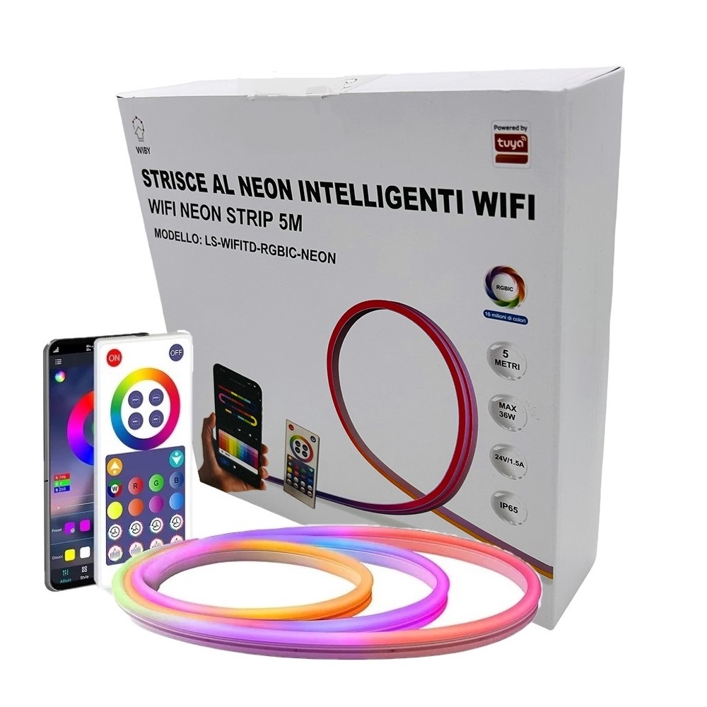 Striscia led 5 metri flex effetto neon RGBIC tubo intelligente multicolor IP65 Smart google alexa balcone festa scudetto Napoli