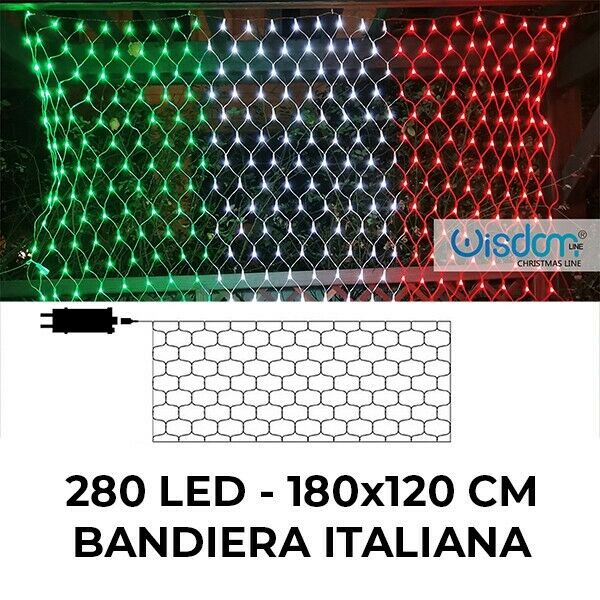 Bandiera tricolore tenda Luminosa Italia Per esterno con 280 led luci bianco rosso verde 1.8x1.2 Metri