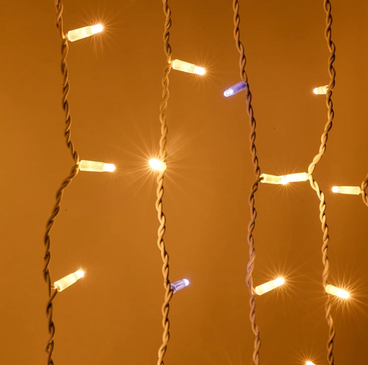 Tenda Luminosa 3x0,8m 128 Maxi LED Reflex Caldo Fisso + Flash Bianco IP67 Prolungabile Cavo Gommato Bianco per Natale Matrimoni Eventi luci natalizie