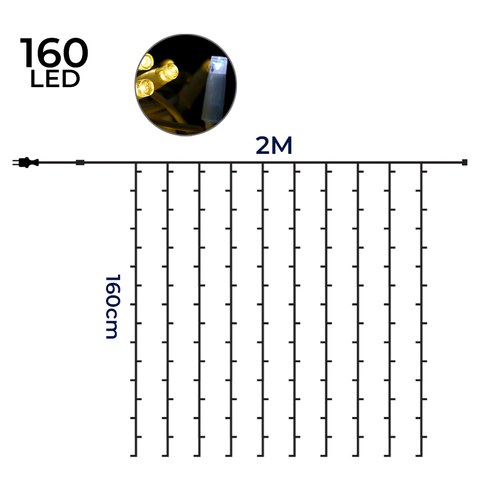 La tenda luminosa offre un effetto scenografico grazie a 160 LED totali con luce calda predominante e LED flash bianco freddo distribuiti in modo sfalsato per un risultato elegante e dinamico. È ideale per creare atmosfere suggestive durante feste, matrimoni e decorazioni natalizie. La protezione IP67 la rende perfetta per uso interno ed esterno poiché resiste a pioggia, umidità e polvere, garantendo un’installazione sicura e duratura in qualsiasi stagione. È quindi adatta a balconi, terrazze, giardini, vetrine e ambienti commerciali.