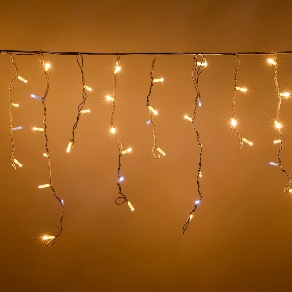 Con una lunghezza totale di 6 metri, questa tenda combina 224 LED a luce calda fissa e 56 LED a luce bianca fredda intermittente, offrendo un effetto luminoso elegante e dinamico che valorizza ogni spazio. Le lunghezze delle sue cascate sono: 30cm - 40cm - 70cm - 60cm (vedi foto).