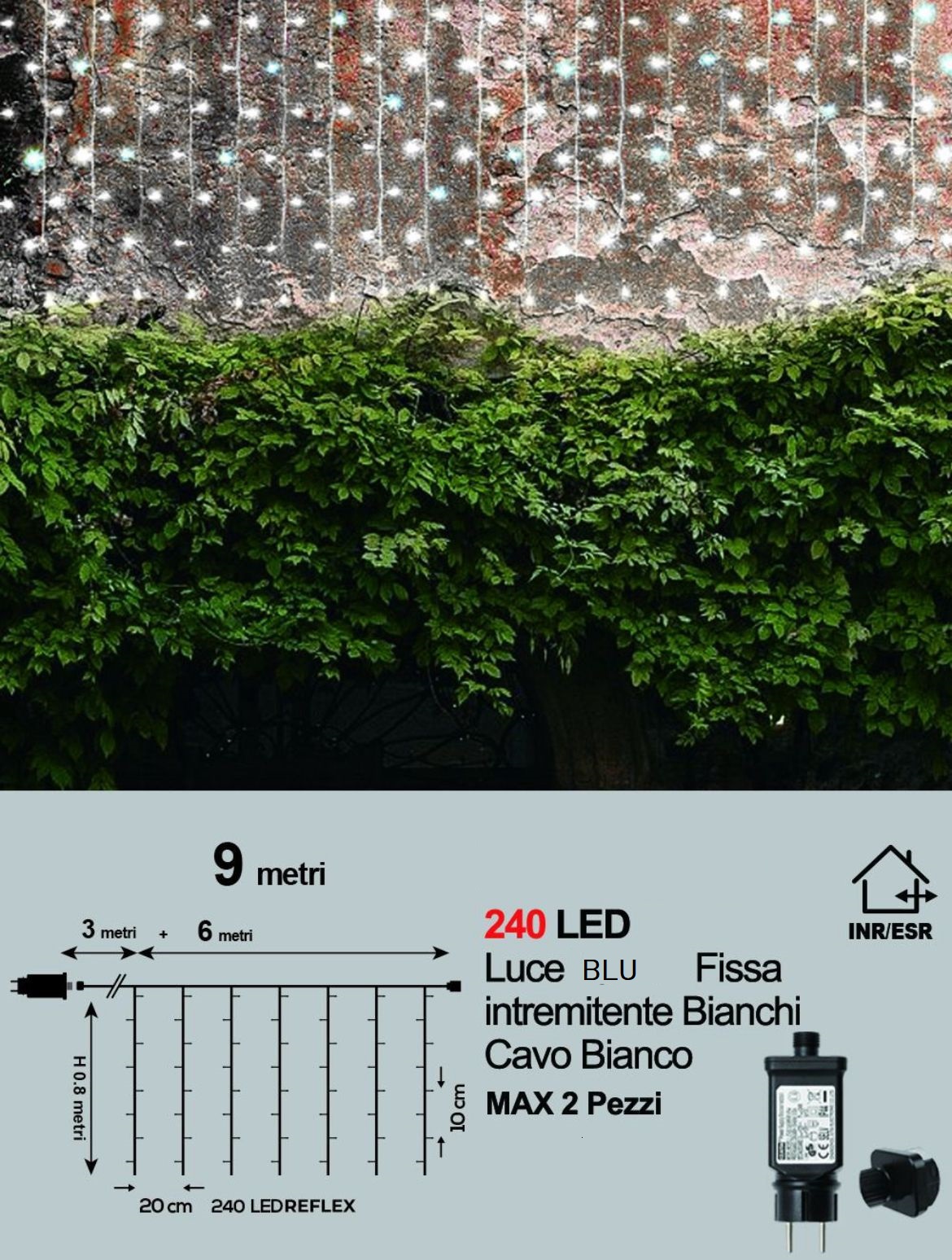 Tenda Luminosa con 240 LED lineare misura 6 metri larghezza e 0,80 cm discesa Natale Luce Blu fissa e Flash Bianco Freddo luci natalizie da esterno