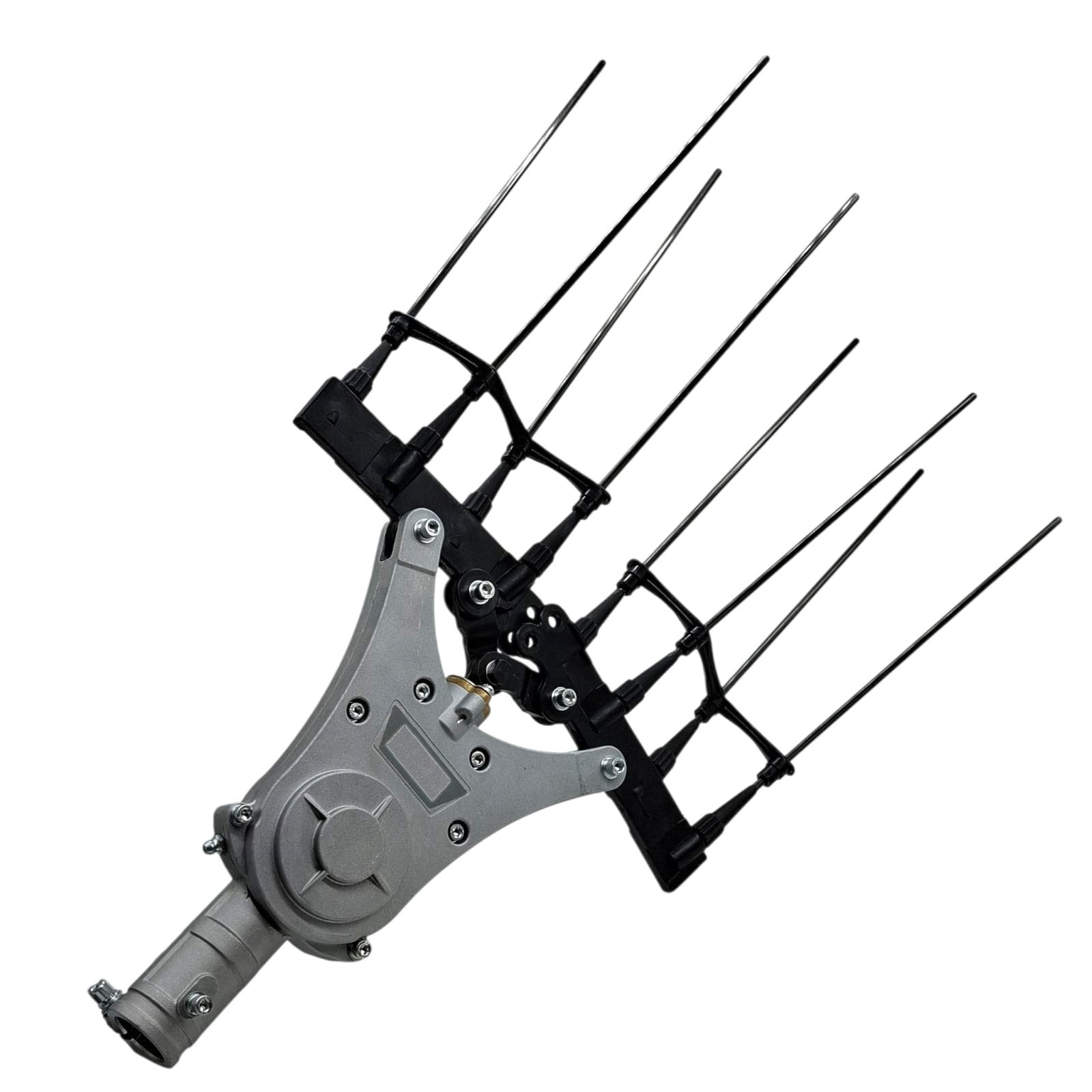 Questa testa abbacchiatore universale è ideale per chi desidera raccogliere le olive in modo rapido, efficiente e senza fatica, utilizzando il proprio decespugliatore come base motrice.