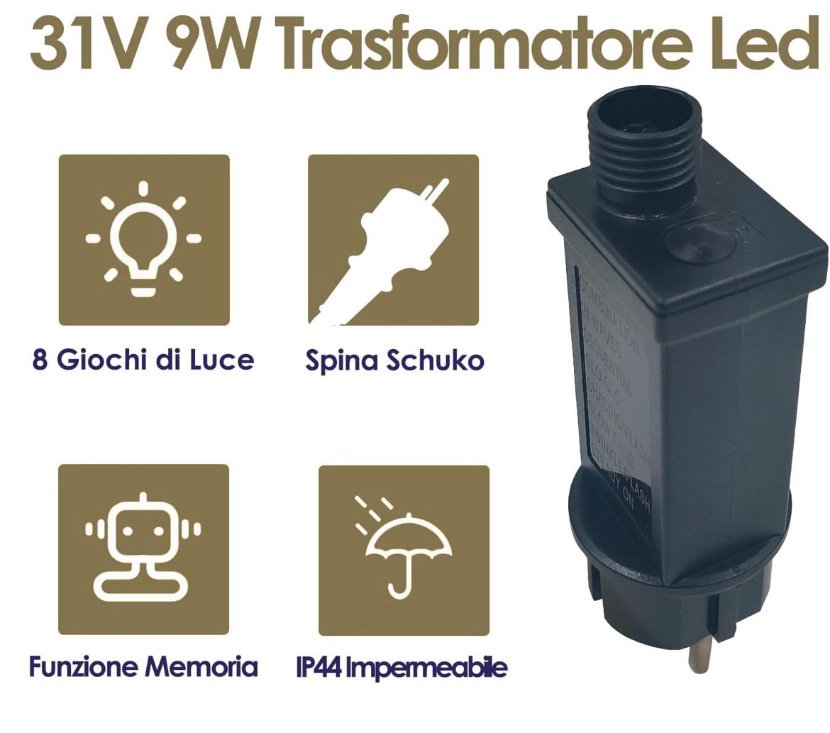 Grazie alla protezione IP44, l’alimentatore è impermeabile e resistente a spruzzi e condizioni atmosferiche leggere, ideale per l’utilizzo in esterno durante festività ed eventi, mantenendo al tempo stesso elevata sicurezza anche in ambienti interni. Funziona con modalità di corrente costante, garantendo un uso affidabile nel tempo.