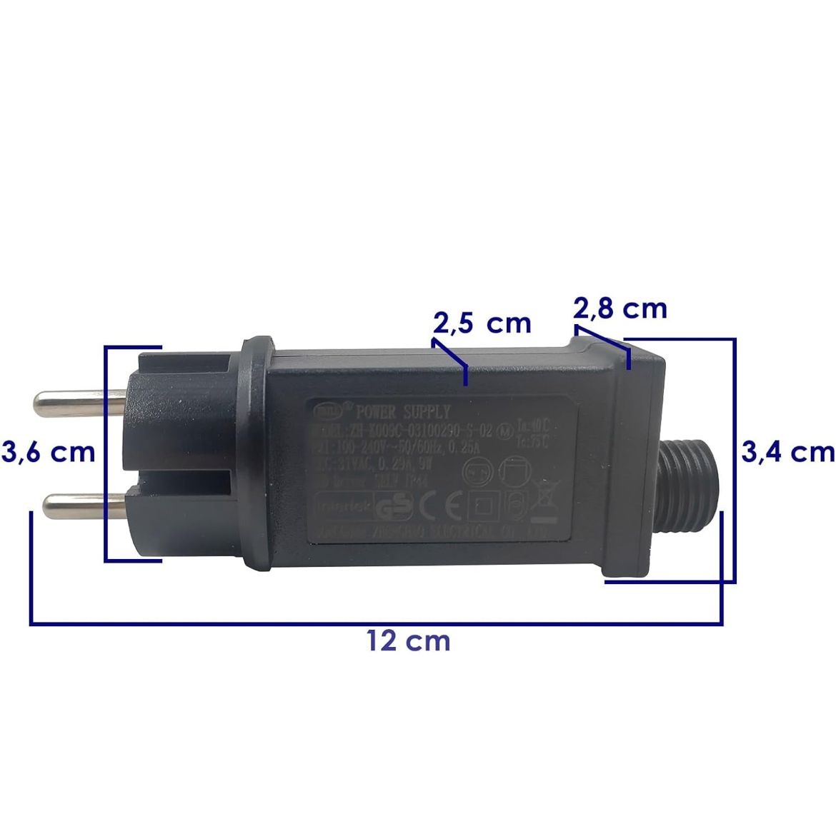 Grazie alla protezione IP44, l’alimentatore è impermeabile e resistente a spruzzi e condizioni atmosferiche leggere, ideale per l’utilizzo in esterno durante festività ed eventi, mantenendo al tempo stesso elevata sicurezza anche in ambienti interni. Funziona con modalità di corrente costante, garantendo un uso affidabile nel tempo.