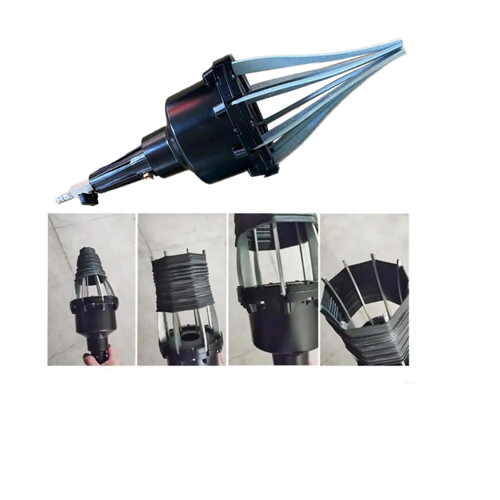 Questo utensile pneumatico è progettato per il montaggio rapido delle cuffie elastiche sui giunti omocinetici dei veicoli. Grazie alle ganasce espandibili, consente di allargare la cuffia in modo uniforme e posizionarla facilmente sull’albero di trasmissione senza danneggiarla.